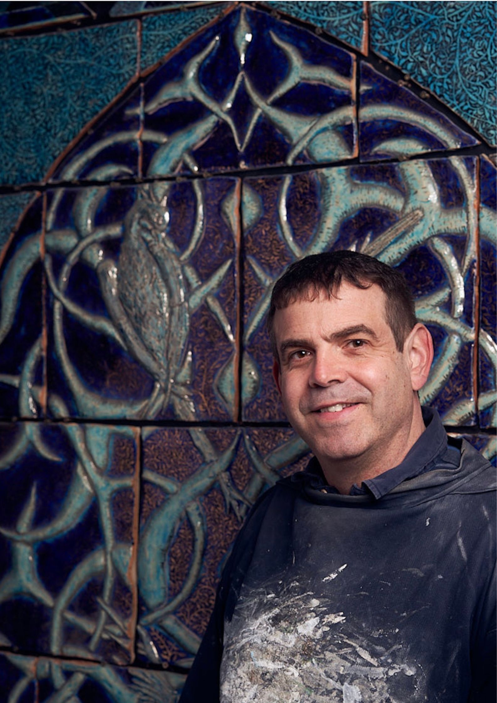 British contemporary ceramist, artist, educator and musician, Boris Aldridge (b. 1974, Dublin), has been hand-crafting and firing unique ceramic tiles for nearly 25 years from his studio in Suffolk, UK.
